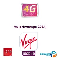 Virgin Mobile commercialise déjà des forfaits 4G depuis le 13 novembre dernier, les offres sont pour le moment disponibles en H+ et en 4G dès le printemps 2014 sans aucun surcoût. La gamme est composée des forfaits suivants :