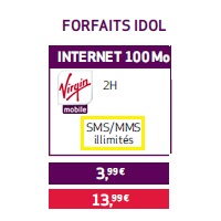 Les offres sont identiques avec ou sans engagement, par contre le prix du forfait diffère par rapport à l’achat du téléphone mobile. Vous profitez avec le forfait iDOL M sur 24 mois d'un mobile à partir de 1€. Virgin Mobile propose tout de même une facilité de paiement pour l’achat du mobile avec le forfait iDOL S sans engagement en ajoutant 4€ par mois. Le choix du forfait va dépendre du type de téléphone recherché.