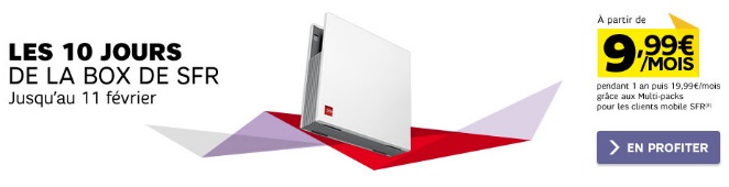 Grâce à cette vente flash valable pendant 10 jours, l’offre Tripleplay de SFR est au prix de 19.99€ pendant 12 mois au lieu de 29.99€. La Box de SFR +Tel +TV intègre un accès Internet avec l’ADSL jusqu’à 20méga et avec le VDSL jusqu’à 95méga (débit variable en fonction de la longueur de la ligne). Vous bénéficiez des appels illimités vers les fixes en France et vers les fixes de plus de 100 destinations internationales. Une option à 5€ en plus par mois est disponible pour profiter des appels illimités vers les mobiles en France.