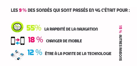 La 4G dispose d’une grande notoriété auprès des Français, parmi les 5045 participants, 96% ont déjà entendu parler de la 4G, seulement 9% des sondés ont franchit le pas en s'abonnant à l'une des offres 4G. 35% des sondés ne sont pas prêts à passer sur un forfait 4G et 42% ne savent pas encore s'ils le feront.
