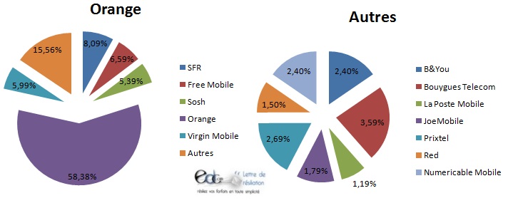 B&You opérateur Low Cost de Bouygues Telecom et Numericable Mobile récupèrent 2.40% des abonnés Orange et 2.69% se tournent vers Prixtel.