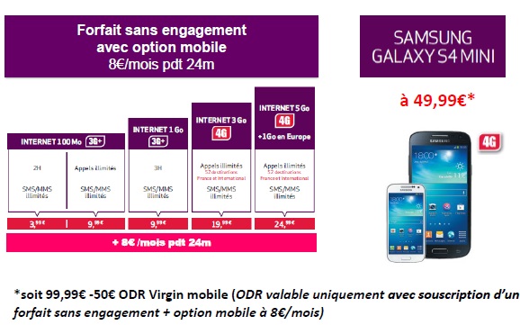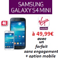 Le Samsung S4 Mini à 49.99€ avec un forfait sans engagement chez Virgin Mobile !