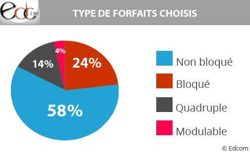 Le constat est le même que les périodes précédentes, plus de 80% du panel ne sait pas vers quel type de forfait s’orienter, en effet 4020 personnes ont répondu « Peu importe » à cette question. Sur le panel restant soit 645 personnes, 58% cherchent un forfait non bloqué (avec la possibilité de dépassement), 24% se dirigent plutôt vers un forfait bloqué (aucun dépassement possible), 14% vers une offre Quadrupleplay (box et mobile) et 4% vers une offre modulable (forfait qui s’ajuste tous les mois en fonction de vos consommations).