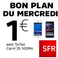 La vente flash est valable ce mercredi 07 Mai jusqu’à ce soir minuit. Vous profitez ainsi de deux mobiles à 1€ chez SFR avec la souscription à un forfait bloqué 2H + 500Mo à 19.99€ avec un engagement de 24mois.