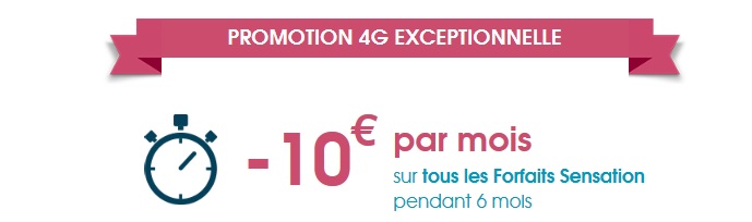 - Le forfait Sensation 4G 3Go au prix de 29.99€ par mois sans mobile soit à 19.99€ pendant 6 mois, ou encore à 36.99€ soit 26.99€ pendant 6 mois avec achat de mobile et engagement de 24 mois.