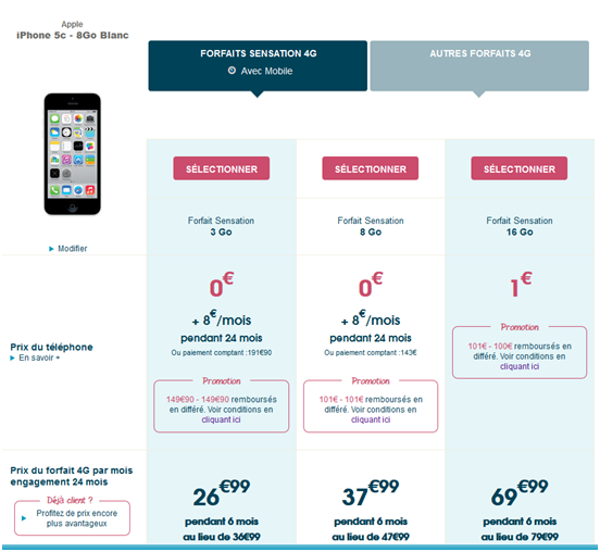 Des prix ultra compétitifs dont il faut profiter sans trop tarder car en plus des remises sur mobiles vous profitez des Forfaits Sensation 4G à -10€/mois pendant 6 mois!!! Les forfaits Sensation 4G à moins 10€ par mois, soit à partir de 26.99€/mois sur une durée de 6 mois pour le forfait Sensation 4G 3Go sur 24 mois d'engagement.