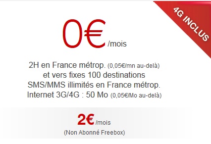 Le Forfait 4G 2H facturé 2€ par mois (gratuit pour les abonnés Freebox) comprend :