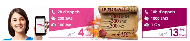 Un forfait 5H + 300SMS + 300 Mo à 4.45€ chez Budget Mobile