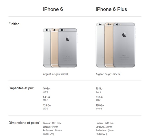 Point de vue prix, l’iPhone 6 se calque sur l’iPhone 5s : 709 euros pour 16 Go, 8