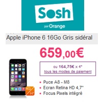 L'IPhone 6 16 Go couleur or, argent, ou gris sidéral est à 659€ payable en 4 fois sans frais à 164.75€ par mois.
