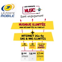 Forfait MUSIC 3H + 2Go 4G à 9.99€ pendant 12 mois chez La Poste Mobile