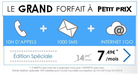 Le forfait 10H : 7,49 euros par mois les 6 premiers mois puis 14,99 euros par mois