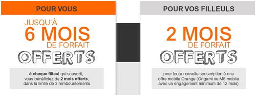 En ce moment, il est possible de recevoir jusqu'à 6 mois de forfait offerts avec le parrainage Orange mobile. Pour participer à l'opération de parrainage, il faiut simplement saisir son numéro de mobile Orange