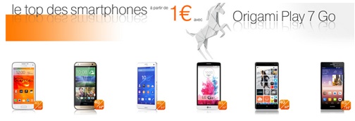 Le top des Smartphones à 1€ avec un forfait Origami Play 7Go