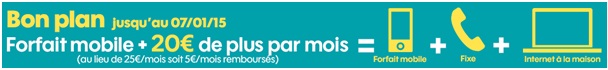 Jusqu'au 08 janvier 2015, Sosh vous offre 5€ de remise par mois pour toute souscription à un forfait mobile et Livebox. La promotion est valable pendant toute la durée de conservation de l’offre. Les offres Livebox et mobile sans la TV démarrent à 29.99€ par mois soit à partir de 24.99€ avec la promotion proposée par Sosh ou encore à partir de 34.99€ avec la TV (en option à 5€ par mois). Pour profiter de l'offre de remboursement vous devez compléter et renvoyer ce coupon.