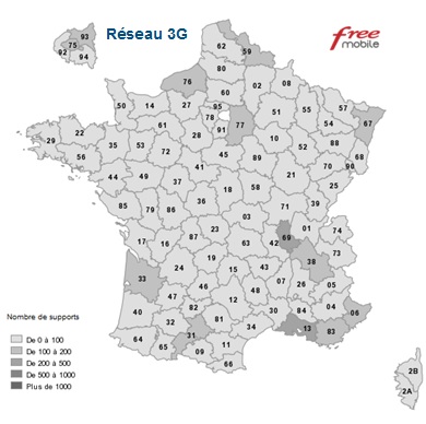 Dans le cadre de cette obligation, l'ARCEP a demandé à Free Mobile de justifier le respect de son obligation de déploiement, et notamment de transmettre la carte de couverture au 12 janvier 2015 de son réseau 3G (hors itinérance).