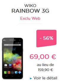 Le Wiko Rainbow 3G à - 56% en soldes chez Bouygues Telecom