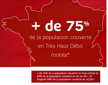 SFR couvre plus de 99% de la population en 2G/3G+, 75% en dual Carrier et 50% en 4G/4G+.