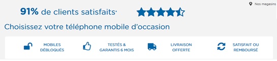Vous cherchez à vous équiper d’un iPhone mais votre budget est serré pour l’acquérir neuf, pensez aux Smartphones d’occasion vendus chez Bouygues Telecom. En choisissant d’acheter votre mobile d’occasion, vous économisez par rapport au prix neuf et vous conservez votre forfait mobile actuel. Rappelons que les mobiles d’occasion sont vendus débloqués, sans abonnement mobile et sont garantis 6 mois. Recommerce leader des mobiles d’occasion en France est le partenaire de Bouygues Telecom depuis 2010, tous les Smartphones sont entièrement vérifiés dans des ateliers spécialisés situés en France, avant d'être proposés aux clients de Bouygues Telecom.