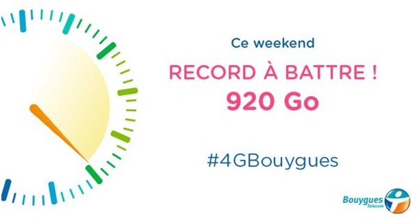 Les usages data ce Week-end pour les abonnés à un forfait mobile chez Bouygues Telecom sont en illimité quelque soit l’offre détenue (les connexions à internet ne seront pas décomptés de l’enveloppe data pour les formules intégrant de la data), c'est l'occasion de battre le dernier record de 920Go, de tester et profiter au maximum des usages vidéos, regardez des vidéos en HD et la TV, de partager instantanément vos vidéos, de télécharger toutes vos applications et envoyez vos pièces jointes ou encore de jouer en réseau...