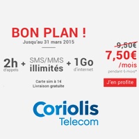 Les promotions chez Coriolis sont appliquées les 6 premiers mois et les forfaits concernés sont sans engagement, résiliables à tout moment sans frais, alors pourquoi ne pas se laisser tenter ?