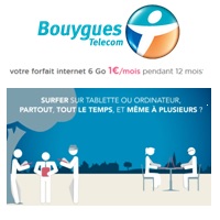 Jusqu'au 12/04/2015, une série limitée est disponible pour tous les clients Bouygues Telecom. Vous pourrez souscrire à un forfait Bbox Nomad 6Go pour seulement 1€/mois pendant 12 mois au lieu de 14€99/mois facturé habituellement.