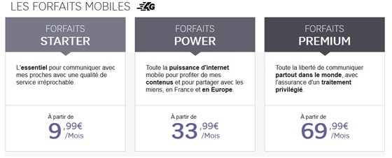 La gamme Power est composée des forfaits suivants :