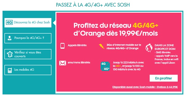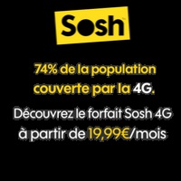 Sosh marque Low Cost d’Orange couvre 74% de la population française en 4G et pour profiter pleinement du réseau, deux forfaits sans engagement sont disponibles à partir de 19.99€ par mois.