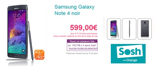 Meilleure offre chez Sosh : Galaxy Note 4 à 599€ !