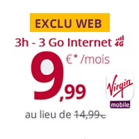 Virgin Mobile a prolongé la remise de 5€ valable à vie pour son forfait 3h + 3Go en 4G depuis le 16 Avril dernier et l’opération se termine ce soir 22 Avril minuit. Cette offre est au prix de 9.99€ au lieu de 14.99€ sans engagement ou encore 19.99€ au lieu de 24.99€ avec engagement de 24mois. En version bloquée c’est possible en ajoutant l’option cockpit facturée 3€ par mois. Pour ceux qui souhaitent plus d’internet, l’opérateur propose l’option dooble data à 5€ par mois soit 6Go à partir de 14.99€ par mois.