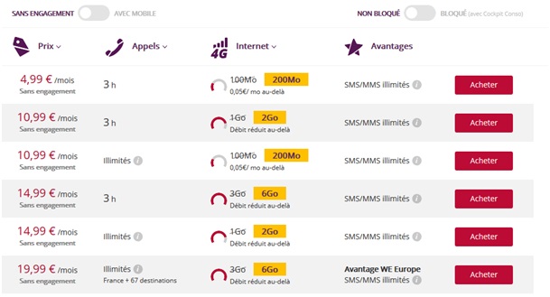 N'oubliez pas que vous pouvez aussi profiter d'une option mobile à 4€ ou 8€ par mois pendant 24 mois pour acquérir un Smartphone avec un forfait sans engagement chez Virgin Mobile. Pour éviter tout dépassement et maitriser ainsi votre budget, il est possible d’ajouter une option cockpit facturée 3€ par mois avec les offres du premier MVNO.