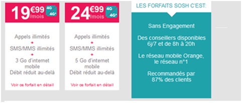 Les deux forfaits 4G sont disponibles à partir de 19.99€ :