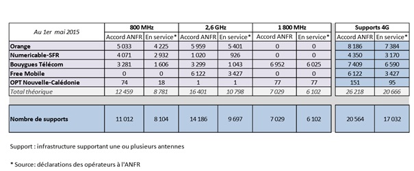 20564 sites ont été autorisés pour la téléphonie mobile 4G tous opérateurs mobiles confondus au 1er Mai 2015, un chiffre est en hausse de 1.8% depuis le 01 Avril 2015.