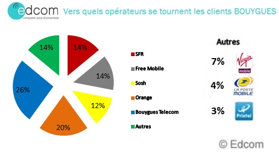 26% retournent chez Bouygues Telecom contre 27% le mois précédent, rappelons que l'opérateur a fusionné avec sa marque Low Cost B&You en Novembre 2014.