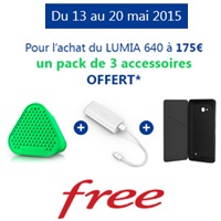 Pour l’achat du Microsoft Lumia 640 entre le 13 et 20 Mai prochain, Free Mobile vous offre un pack comprenant une enceinte filaire, un chargeur de secours et un étui à rabat d’une valeur de 95€.