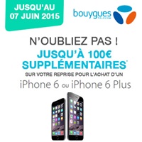 Bouygues Telecom : Bonus de 100€ pour l’achat d’un iPhone 6 ou 6Plus dans le cadre de la reprise de votre ancien Smartphone :