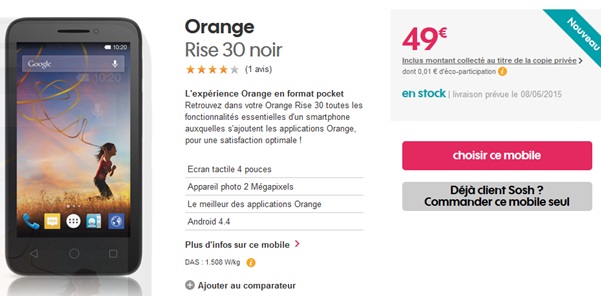 Achetez l’Orange Rise 30 avec un forfait Sosh