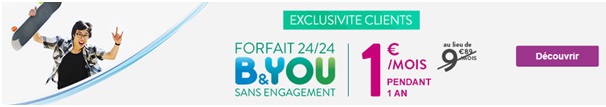 Les abonnés Bouygues Telecom à un forfait mobile y compris en version bloquée, Bbox (hors pro) ou internet en mobilité, peuvent profiter de la nouvelle opération proposée par l’opérateur soit un forfait supplémentaire avec appels, SMS et MMS illimités pour seulement 1€/mois pendant 1 an. Au-delà des 12 mois, le forfait passe au prix de 9.89€ grâce à la remise multiligne de 10%.