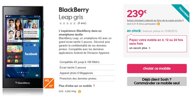 Le Blackberry Leap rejoint la boutique mobile Sosh !