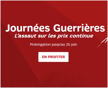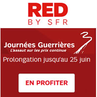 RED de SFR prolonge l’opération « les journées guerrières » jusqu’au 25 Juin prochain. Rappelons que les offres sont sans engagement et les réductions sont valables pendant 12 mois. En cas de résiliation de l'offre ou de l'option 2Go (sur le forfait 2H) ou en cas de changement d'offre pendant les 12 mois, l'abonné perdra la remise appliquée.