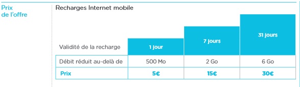 -6Go à 30€ validité 31 jours.