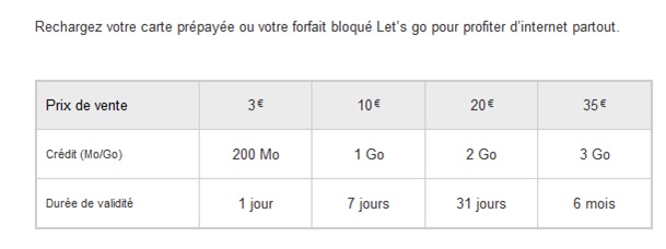 - Forfait Let’s Go 8Go à 24.99€ par mois sans engagement,