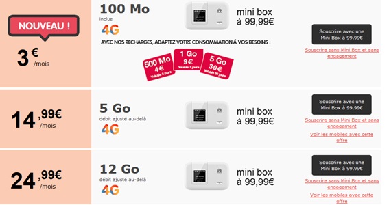 Les forfaits sans engagement :