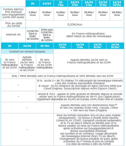 - Forfait 24/24 + 10Go à 39.99€ sans engagement,