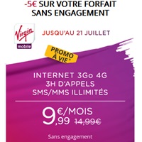 La remise de 5€ valable à vie sur le forfait 3h + 3Go en 4G chez Virgin Mobile se termine ce soir minuit, il ne vous reste donc plus que quelques heures pour en profiter. Cette offre est disponible au prix de 9.99€ au lieu de 14.99€ sans engagement ou encore 19.99€ au lieu de 24.99€ avec engagement de 24 mois et achat de Smartphone à partir de 1€.