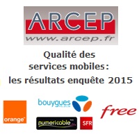 L'ARCEP a effectué, au premier trimestre 2015, une enquête portant sur les services mobiles des opérateurs Orange, Bouygues Telecom, Numericable-SFR et Free Mobile, afin de comparer les services offerts aux utilisateurs par ces opérateurs. L'enquête s'appuie sur plus de 160 000 mesures en 2G, 3G et 4G sur l’ensemble du territoire (à l’intérieur et à l’extérieur des bâtiments) et dans les transports (métro, RER, TER, TGV, autoroutes). Les tests ont porté sur les services mobiles les plus répandus (appels, SMS, transfert de données, web, vidéo).