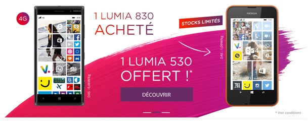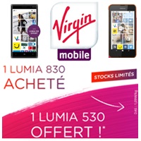 Un Lumia 830 acheté, un lumia 530 offert chez Virgin Mobile :