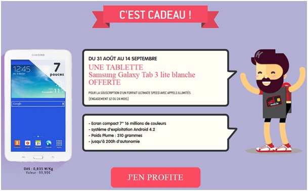 Votre tablette Samsung Galaxy Tab 3 Lite offerte avec les forfaits suivants jusqu’au 14 septembre prochain :