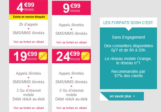 La gamme Sosh est composée de 4 forfaits mobiles qui sont les suivants :