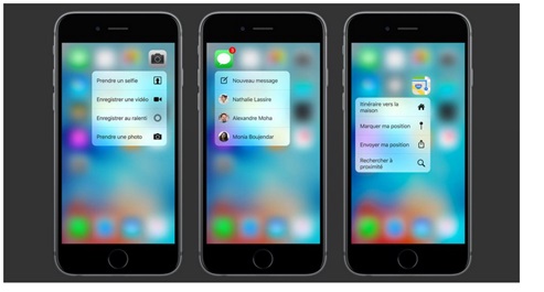 La principale innovation sur les deux derniers modèles l’iPhone 6S et l’iPhone 6S plus est la présence de la technologie 3D touch. Apple a fait plusieurs démonstrations « Mails, Plans, Appareil photo … », l'iPhone sait détecter la pression du doigt. Cette nouvelle technologie capte la pression de votre doigt sur l’écran, seule l'Apple Watch est pour le moment capable de reconnaître quand son utilisateur appuie plus fort sur son écran.